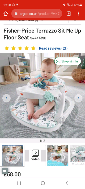 Collect 8 points per 1 on your baby shop with Boots Parenting Club. Registered VAT number 116300129. Floor Booster Baby Chair.